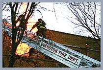 Fires are more than large monetary losses to buildings. Members of the Department remember more than just hose streams. Members, who responded to two Rustoleum Corporation fires in 1976 and 1977, recall large aerosol cans firing into the air like bullets in between normal fire containment. Bowman Dairy Building, 1922 Ridge in February of 1974 had firemen responding to call-back's after a retirement party to a fire in below zero weather with high wind chill factors. The chins, clothing, and even mustaches of firemen were covered with ice. Firefighting is a dangerous profession. In 1985, the Fire Department experienced the tragic death of Firefighter/Paramedic Marty Leoni at a house at 1927 Jackson. Firefighter Leoni's portrait is displayed in City Hall at 2100 Ridge. In addition, a Fallen Firefighters' Memorial was dedicated on July 23, 1993 in Fireman's park at the corner of Maple & Simpson to honor Evanston Firefighters who have lost their lives in the line of duty.